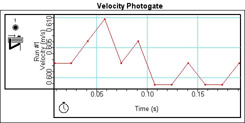 Figure 4. Velocity graph with photogate for Run 1.