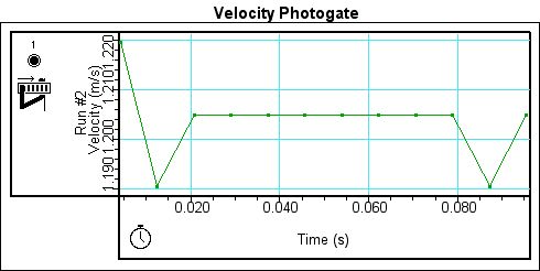 Figure 5. Velocity graph with photogate for Run 2.