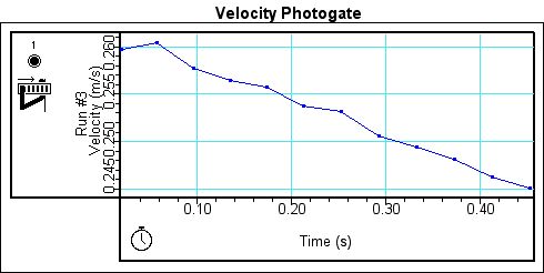 Figure 6. Velocity graph with photogate for Run 3.